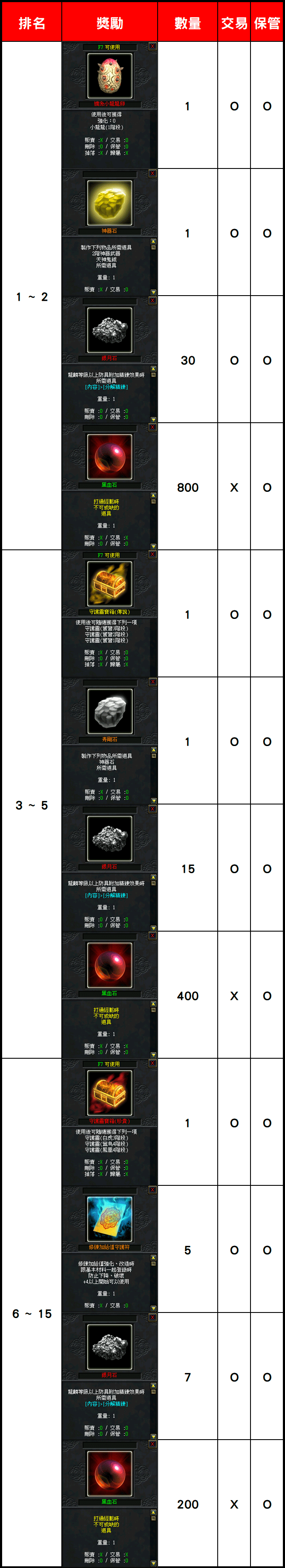 活動各階段期間於商城「累積消費點數最多的前幾名玩家」,即可獲得對應之獎勵!