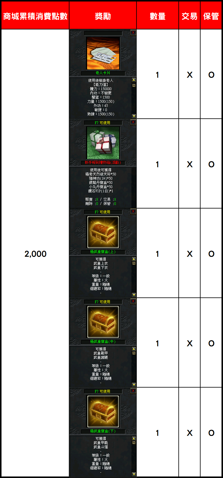 - 道具名稱有(活動)之道具、活動相關道具、活動點數,將於活動結束時統一刪除。