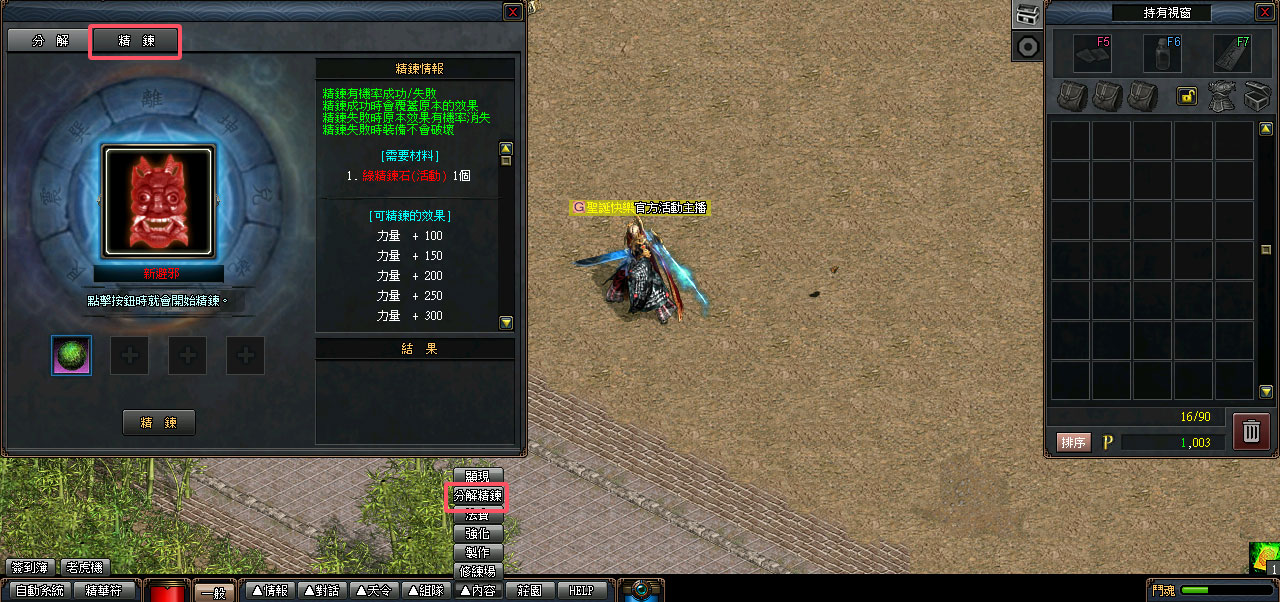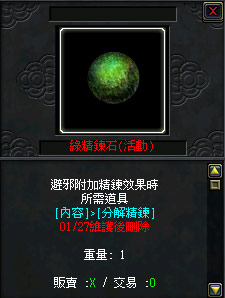 進行避邪精鍊時會消耗「綠精鍊石(活動)」1個。