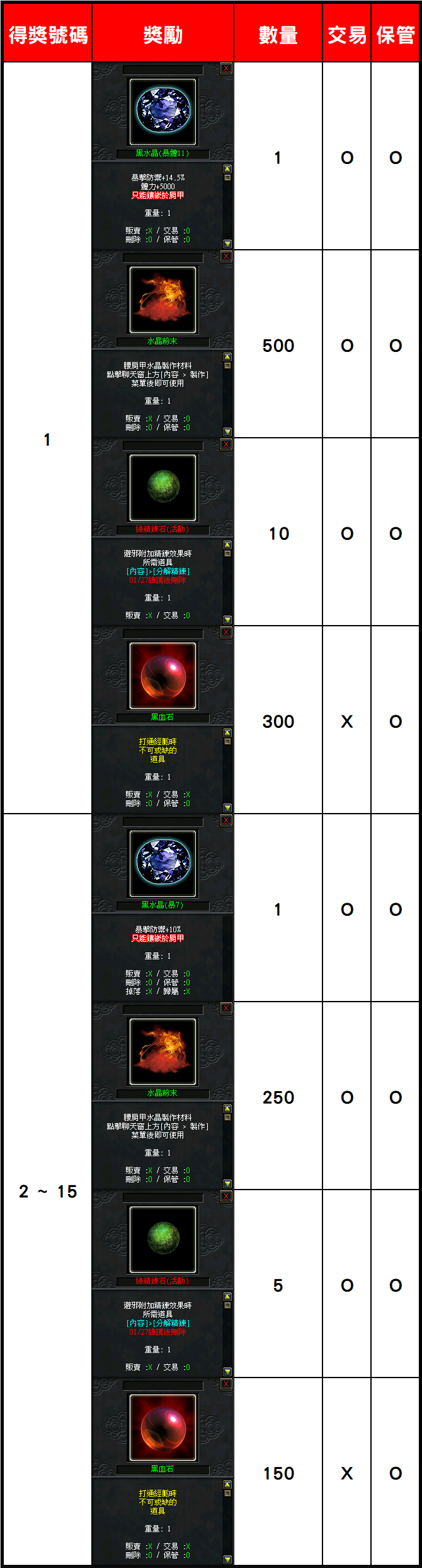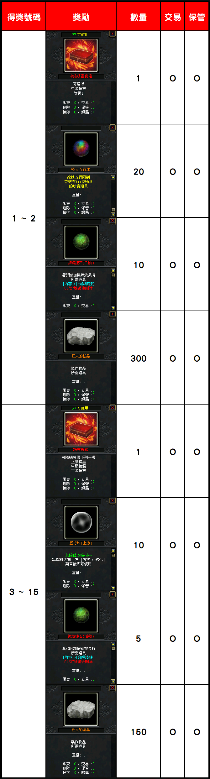 - 道具名稱有(活動)之道具、活動相關道具、活動點數,將於活動結束時統一刪除。