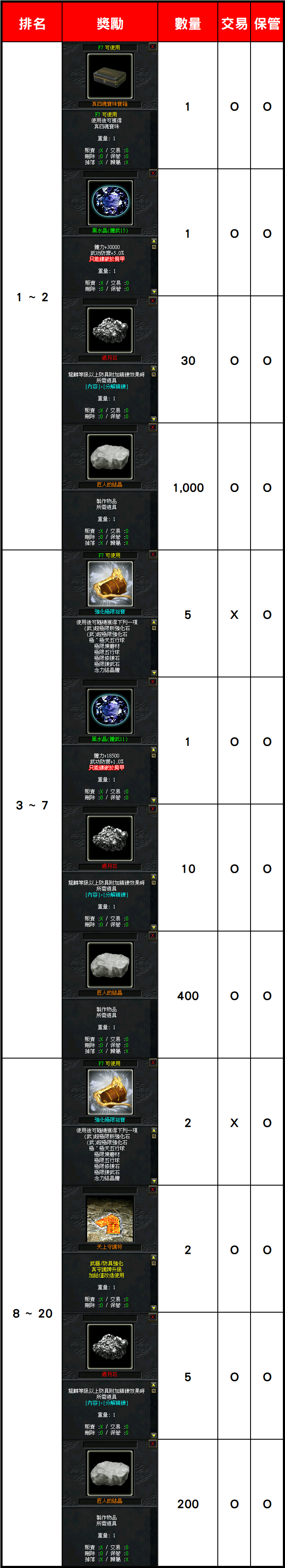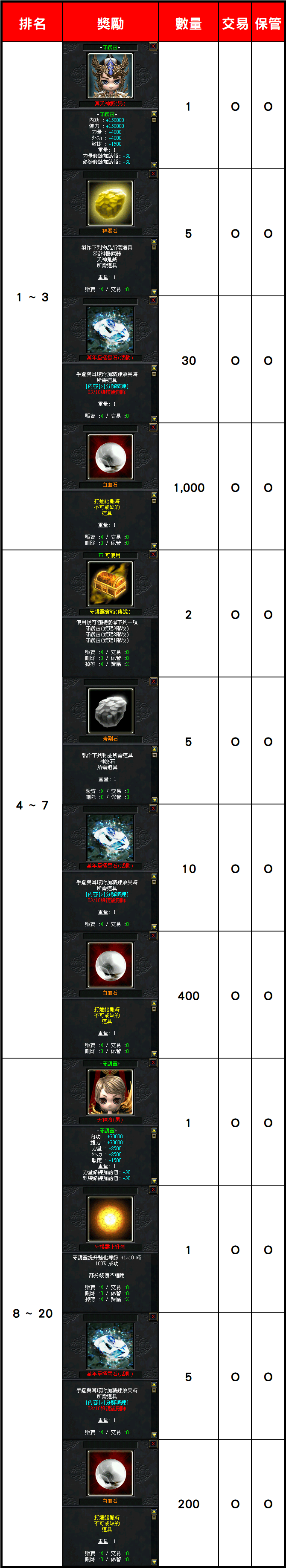 活動各階段期間於商城「累積消費點數最多的前幾名玩家」,即可獲得對應之獎勵!