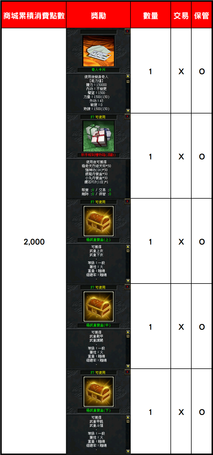 | 道具 | 道義寶箱、真換骨武器 |
