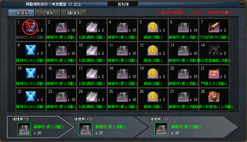 ※ 簽到獎勵全部領取完畢後,需等下次活動開始時才會全部重置。