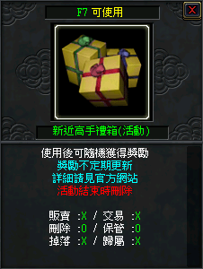 | 新近高手禮箱(活動)獎勵內容 |