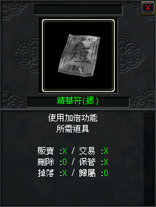 | 精華符(銀) | 500 | X | X | |||