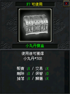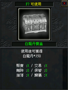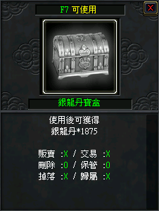 | 銀龍丹寶盒 | 50 | X | O | |||
