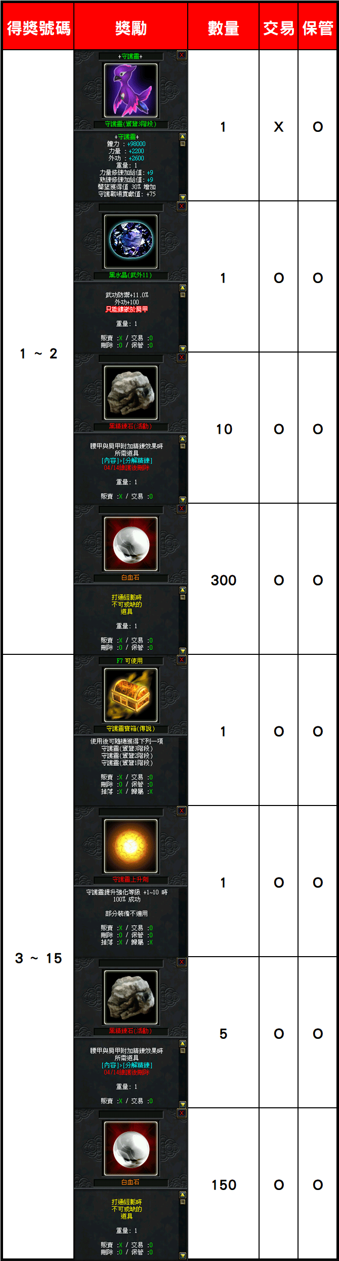 - 道具名稱有(活動)之道具、活動相關道具、活動點數,將於活動結束時統一刪除。