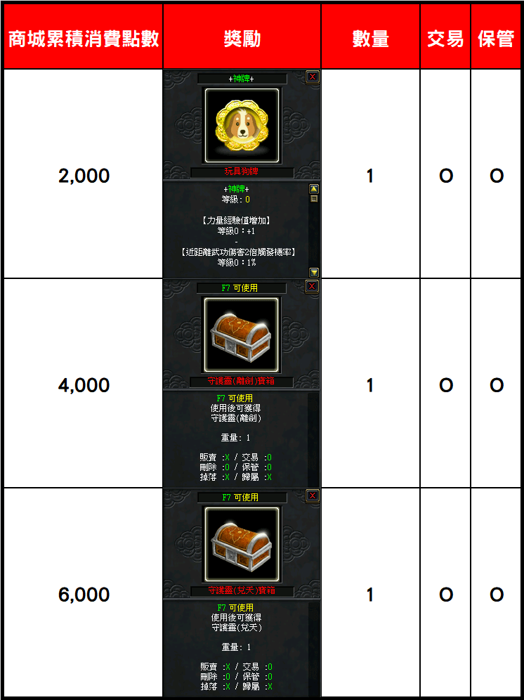 天上守護符:提升活動神牌等級2~10時可防止破壞