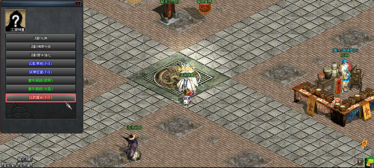 活動入場時間可與洛陽城的活動NPC(86,293)進行[比武擂台(PvP)]選項對話,即可移動至「比武擂台」地圖。