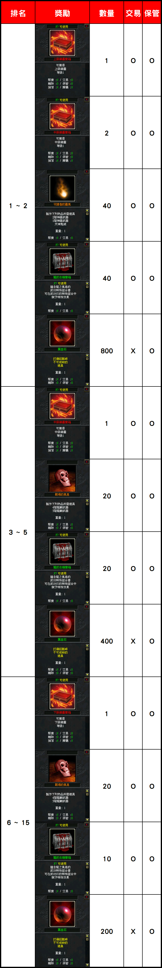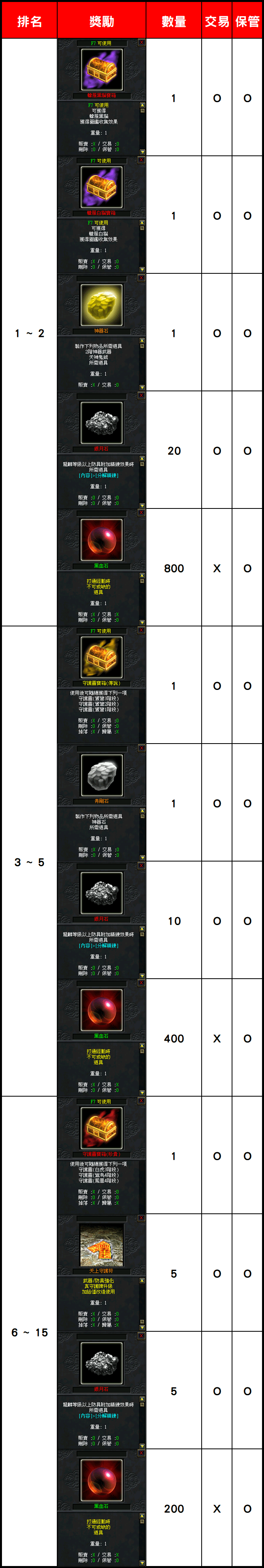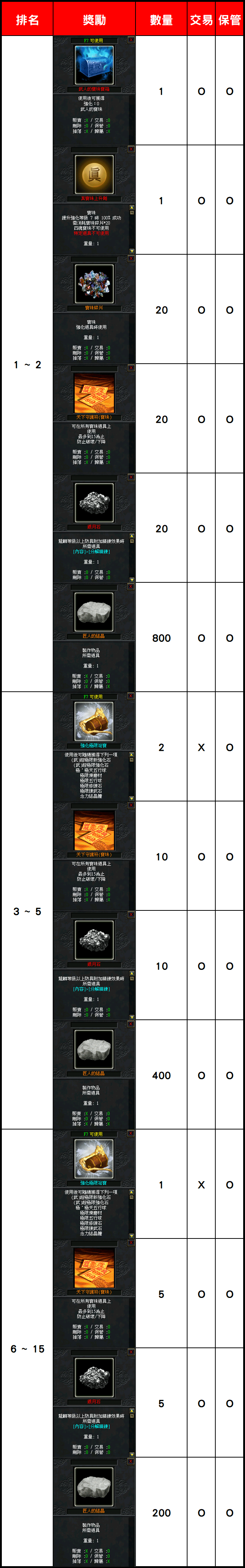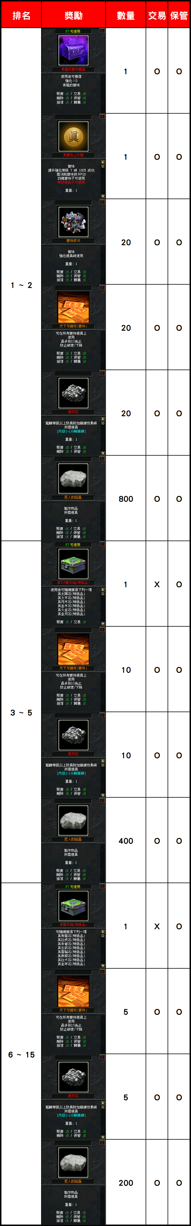 - 道具名稱有(活動)之道具、活動相關道具、活動點數,將於活動結束時統一刪除。