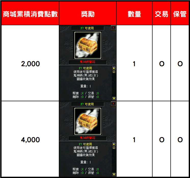 - 道具名稱有(活動)之道具、活動相關道具、活動點數,將於活動結束時統一刪除。