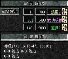 1.雙倍活動:可設定雙倍的能力或武功成長速度、雙倍銀兩、雙倍掉寶率。