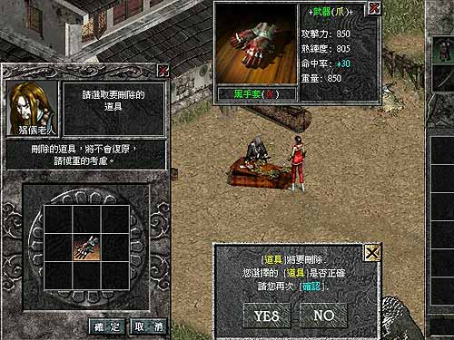 將裝備武器放入刪除視窗後,按下確定,馬上清潔溜溜!但請考慮清楚再按下確認鍵喲