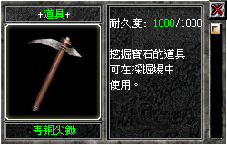 - 使用工具「青銅尖鋤」與「玄鐵尖鋤」必須要在進入「採礦場」內以後玩家才能裝備起來。